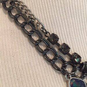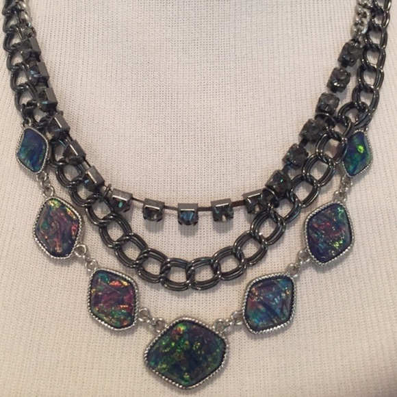 Colorful faux stones are the highlight and the other two strands of chain are great details to make this a super cool necklace! Like new!! Adjustable 15-18 inches