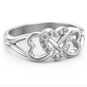 Triple Heart Infinity Diamond Ring 925 Silver