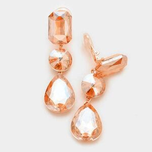Triple Peach Crystal Rose Gold Clip On Earrings NWT