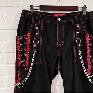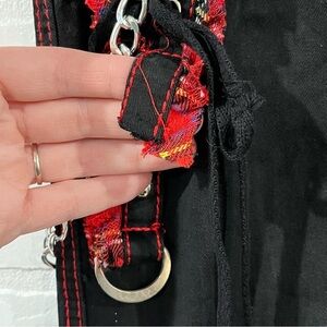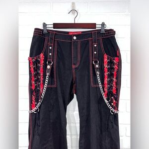 Tripp NYC Black And Red Plaid Lace-Up Chain Pants Gothic Chain Wide Leg Jeans
