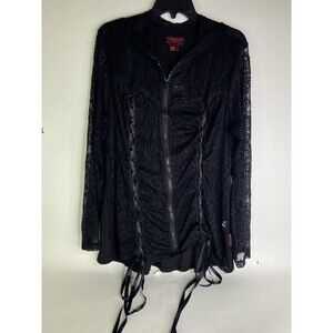 Tripp NYC Black Lace Up Corset Style Zip Hoodie Womens Plus Size 1 1X Goth Emo