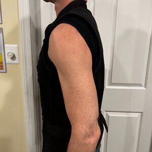 Great fitting in Great condition, but it was originally hooded and the hood is missing. Its been in my closet for a while and its time to go back out into the world. Model is 5'8", 140lbs.