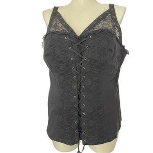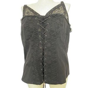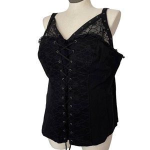 Tripp NYC Daang Goodman Tank Top Black Skull Lace Up Sleeveless Goth NWT Torrid Size 4
