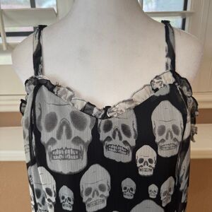Tripp NYC Size 2X Ruffle Skull Print Tank Top Black Semi Sheer Goth Punk Emo