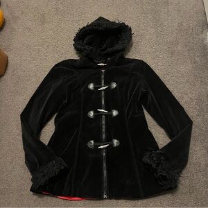 Tripp NYC Vintage Goth Velvet Fur Trim Coat