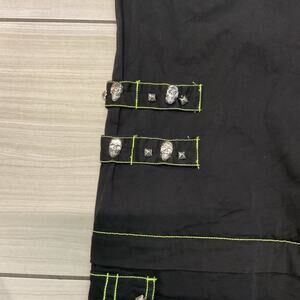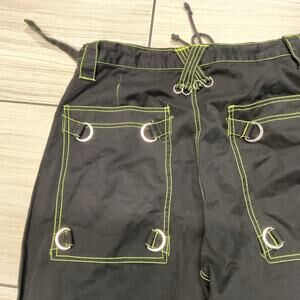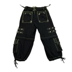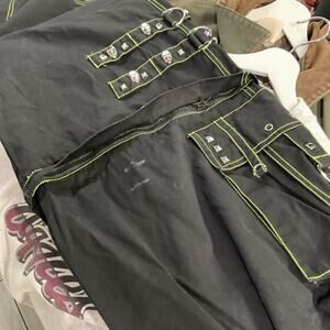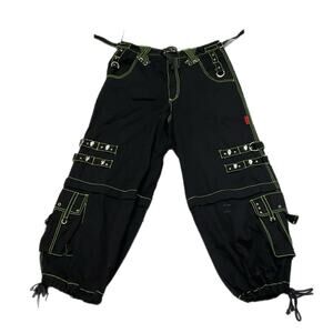 Black Tripp NYC zip-off rave pants with adjustable zippers and strap detailing. Edgy, utilitarian style perfect for festival fits or streetwear looks. With small stains on the bottom leg see photos for reference.