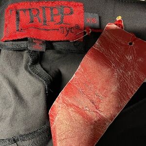 Vintage Tripp NYC black pleated mini skirt with skull and safety pin details. Size xxl. New with tags
