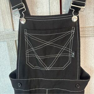 Sexy mallgoth overall dress. Full dress, adjustable straps, front pentagram pocket, back zipper. 65% polyester, 35% rayon.