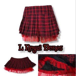 Tripp Royal Bones Plaid Mini Skirt Tulle tutu pleated red black y2k goth l