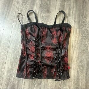Tripp nyc Y2K black & red spiderweb corset top size XL