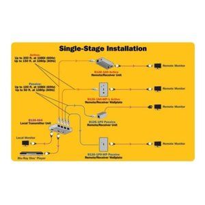 The B126-1P0 HDMI over Cat5e/6 Passive Extender Remote Receiver Unit works in tandem with Tripp Lite’s B126-002 or B126-004 transmitter units (sold separately) to extend an HDMI signal to a high-definition television, monitor or projector. It’s ideal for digital signage applicat