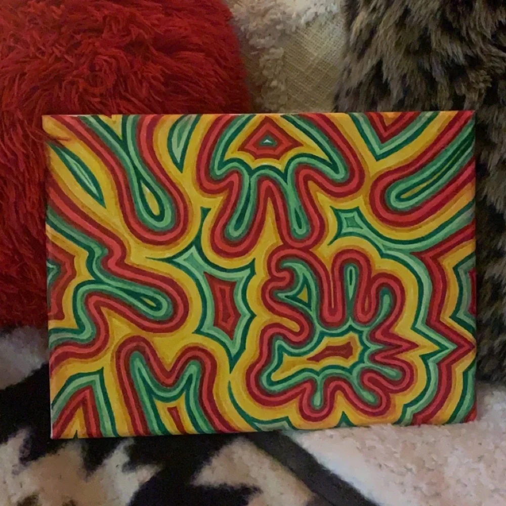 Trippy Hippy Rasta Colored Canvas Painting 8”x10”