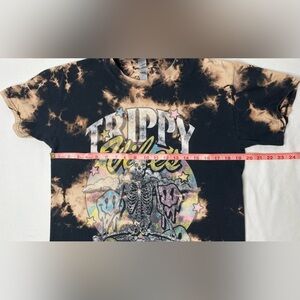 Trippy Vibes Graphic Tee Unisex Skeleton Smiley Face Bleach Dye Black Medium