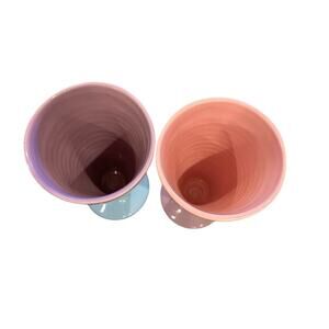 This is a beautiful set of 4 vintage Trisa Stoneware parfait cups. Each cup features a lovely pastel color palette reminiscent of ice cream hues, adding a touch of retro charm to your dessert presentation. Perfect for showcasing parfaits, desserts, or even as decorative pieces. These cups are in great condition and ready to bring a touch of vintage elegance to your table.