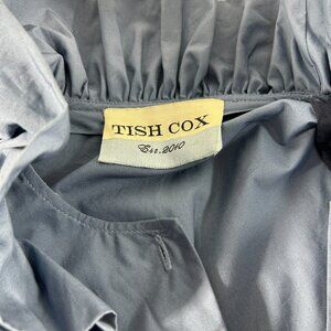 Trish Cox Blue Dress Size Medium Prairie Tiered Ruffles Butterfly Sleeves in good preowned condition. Cotton machine wash.