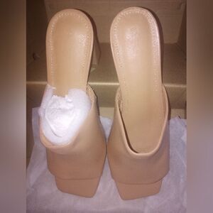 Trish Lucia Tan Square Toe Block Chunky Heels Platform Slip On Mules Size 10 NWT