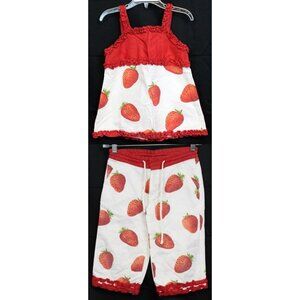 Trish Scully 2pc Outfit Sz 5 Tank Top Pants Strawberry Red Ruffles Summer Rhines