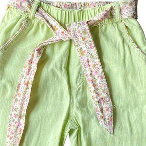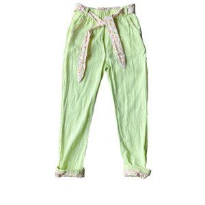 Trish Scully Girls Lime Green Pants with and Pink Floral cuff and Belt Size 7