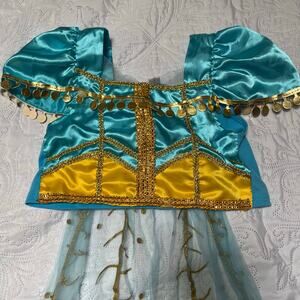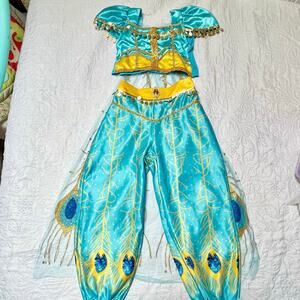 Trish Scully Peacock Princess costume outfit inspired by Jasmine from Disney’s Aladdin. Beautiful details on the pants and top! Good condition - little wear but medallion on the pants attached on top by a safety pin (unable to see when worn). Size 7.