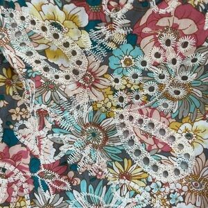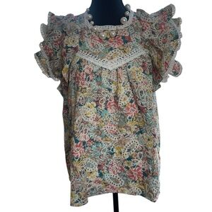Trish Scully Size 8 Cotton Embroidered Blouse With A Floral Print ruffle sleeve