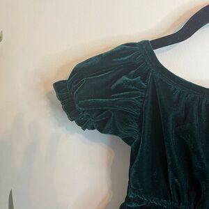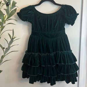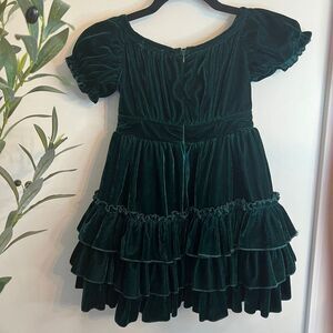 Gorgeous emerald green velour ruffle dress! Tulle lining, zip closure to back. Excellent condition! Size 5