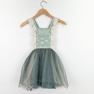 Trish and Scully Child Tulle Lace Apron Blue Gray Cream Dress