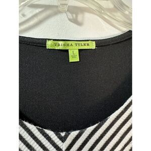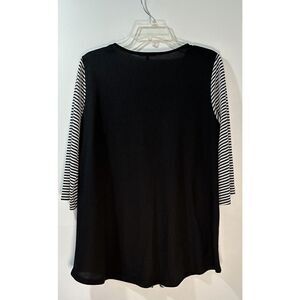 Trish Tyler women’s 3/4 sleeve black white stripe w/pockets top size L. #30-1083