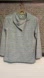Good used condition Trisha Tyler light sweater with asymmetrical draped neckline. See closeup of fabric- it is a mix of sage green and grays in tiny boxes. Very interesting piece. Includes two vertical seams at front.