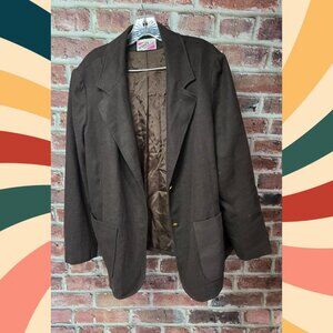 Trissis Blazer Jacket 44 | Vintage 90s Brown Wool Blend Single Breasted