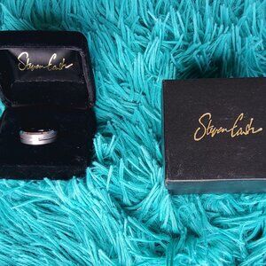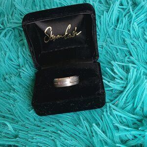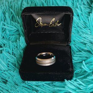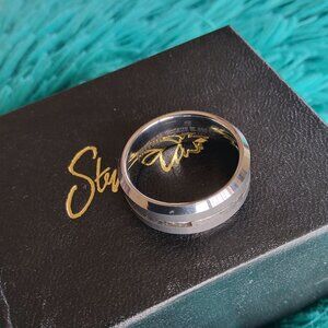 Tungsten Flat Wedding Band with Steel Wire Cable Inlay & Beveled Edges