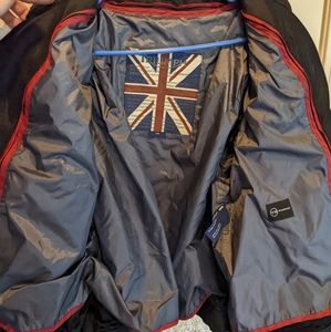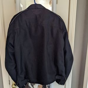 Jacket is in excellent condition, shoulder and forearm armor in place. 20"ptp, and 28" long. Very nice jacket!