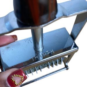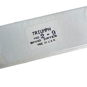 This vintage Triumph No. 2-9 Band Dater is a classic rubber stamp featuring adjustable bands for months, days, and years, allowing for customizable date stamping. Ideal for collectors of antique office equipment or those seeking a functional, retro-style date stamp for personal use.