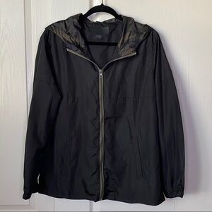 Triumph Over Tragedy Lightweight Black Windbreaker Jacket with camouflage hoodie and two front zippers. Great preloved condition.
