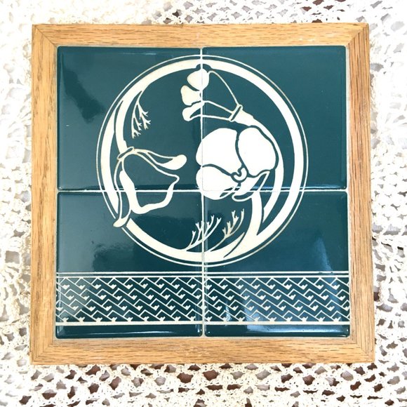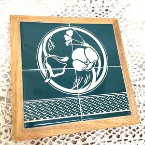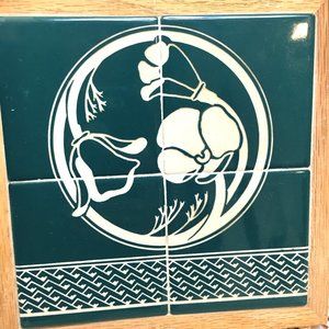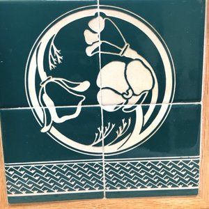 Alaskan Sand Carved Ceramic floral Tile Trivet Vtg ‘90