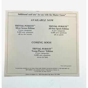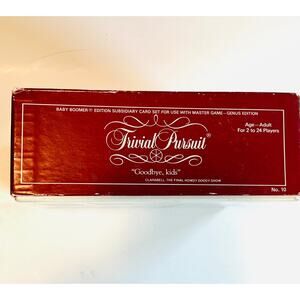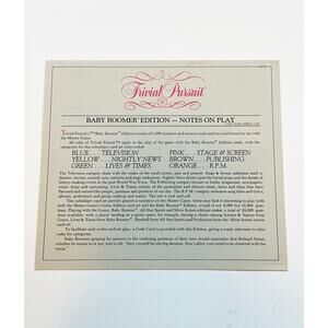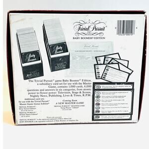 Trivial Pursuit Baby Boomer Edition is a 1983 subsidiary card set made for nostalgic game nights, collectors, & trivia fans who enjoy retro media, history, music, & vintage entertainment. Designed for use with the Master Game, this expansion includes 1,000 cards with 6,000 questions across Stage & Screen, Nightly News, R.P.M., Lives & Times, Publishing, & Television. Great for vintage board game collectors, Genus Edition players, bar trivia, tabletop gatherings, & family shelves celebrating pop culture from the 1950s through the 1980s.