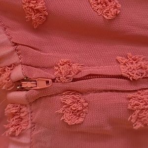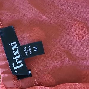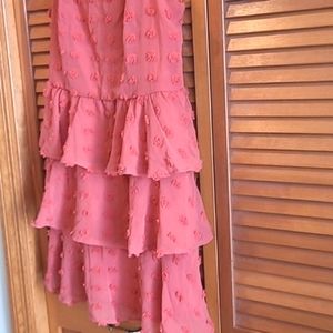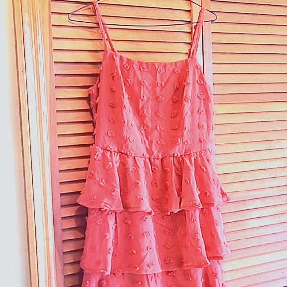 Ruffled dress with adjustable spaghetti straps. Dress is lined and has back zipper. Length top of strap to hem is 31. Size M by Trixxi.
