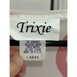 Trixie Red White Faux Wrap Dress Abstract Print 3/4 Sleeve Size L Made In USA