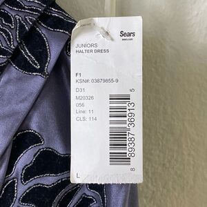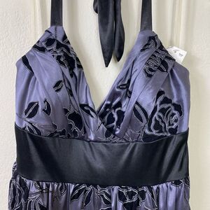 Trixxi Blue & Black Floral Tie Waist Bubble Hem Halter Neck Formal Dress Size L