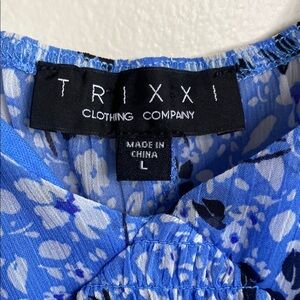 “Charming Trixxi Clothing Co. sundress in a lovely blue floral print. Features adjustable spaghetti straps, flattering V-neckline, and a cinched waist for a feminine silhouette. Size L. Perfect for spring, summer, beach days, vacations, or festival season. Lightweight, breezy, and effortlessly boho — a must-have for your warm-weather wardrobe.”