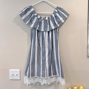 🔥Trixxi Blue and White Ruffled Off-the-Shoulder 🔥