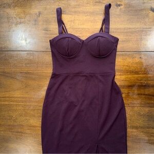 Trixxi Burgundy Padded Bra Top Sleeveless Pencil Dress Front Slit Womens size XS in good preowned condition