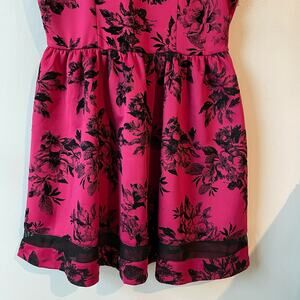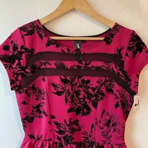 New with tags Mini Dress by Trixxi. Fuchsia pink purple with a black velvet textured floral design.