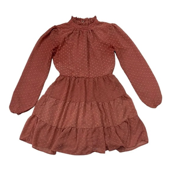 Trixxi Burnt Orange Swiss Dot Tiered Mini Dress S