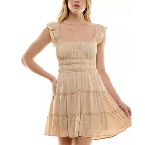 The Trixxi Cream Puff Sleeve Mini Dress in size XL is a stylish and versatile piece perfect for various occasions. Made of a blend of polyester and rayon, this short dress features a solid beige color with ruffle accents and a flattering puff sleeve design. Ideal for travel, parties, or casual outings, this dress has a lined interior and is designed to fit regular sizing in the women's department. The floral-themed dress from Trixxi is sure to turn heads and make a statement wherever you go.
