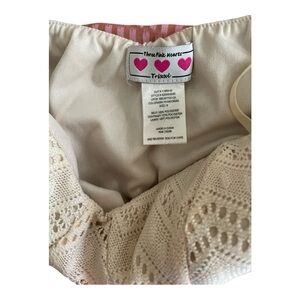 Chic maxi dress with a cream lace top. Flows into a pink and orange ombre skirt. Ideal for sunny days.