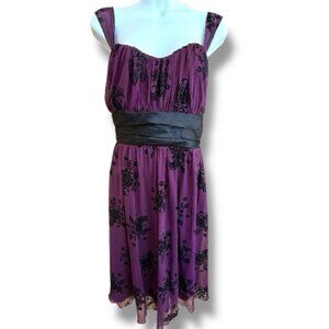 Trixxi Dress Purple Black Velvet Burnout Empire Waist Babydoll Y2K Prom HoCo 1X