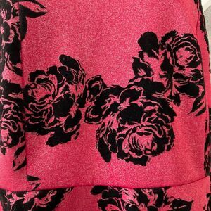Very good pre owned Trixxi Black Flocking Pink shimmer Fit & Flare Skater Dress women plus size 1X Retro Pinup black sweetheart illusion neckline.