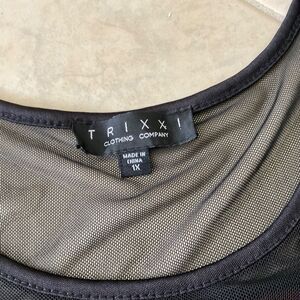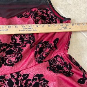 Very good pre owned Trixxi Black Flocking Pink shimmer Fit & Flare Skater Dress women plus size 1X Retro Pinup black sweetheart illusion neckline.