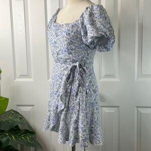 Trixxi - Floral Mini Dress Puff Sleeve Ruffle Hem