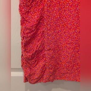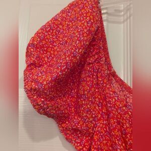 Trixxi Floral Pink purple Mini short dress Sz L Short Puff Sleeve whimsical prairie Graduation boho rayon
